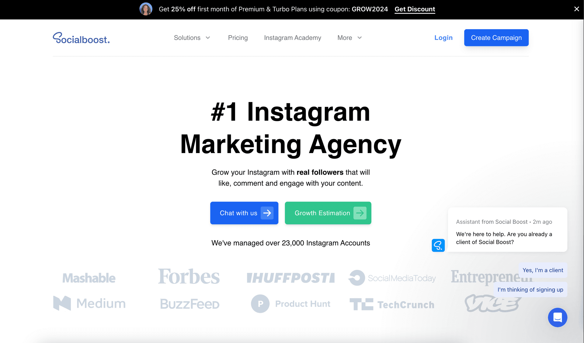 Social Boost presents itself as a top-tier Instagram Marketing Agency, promising to deliver real, engaged followers to your Instagram account. With a focus on organic growth and personalized service, Social Boost aims to stand out in the crowded field of Instagram growth services.