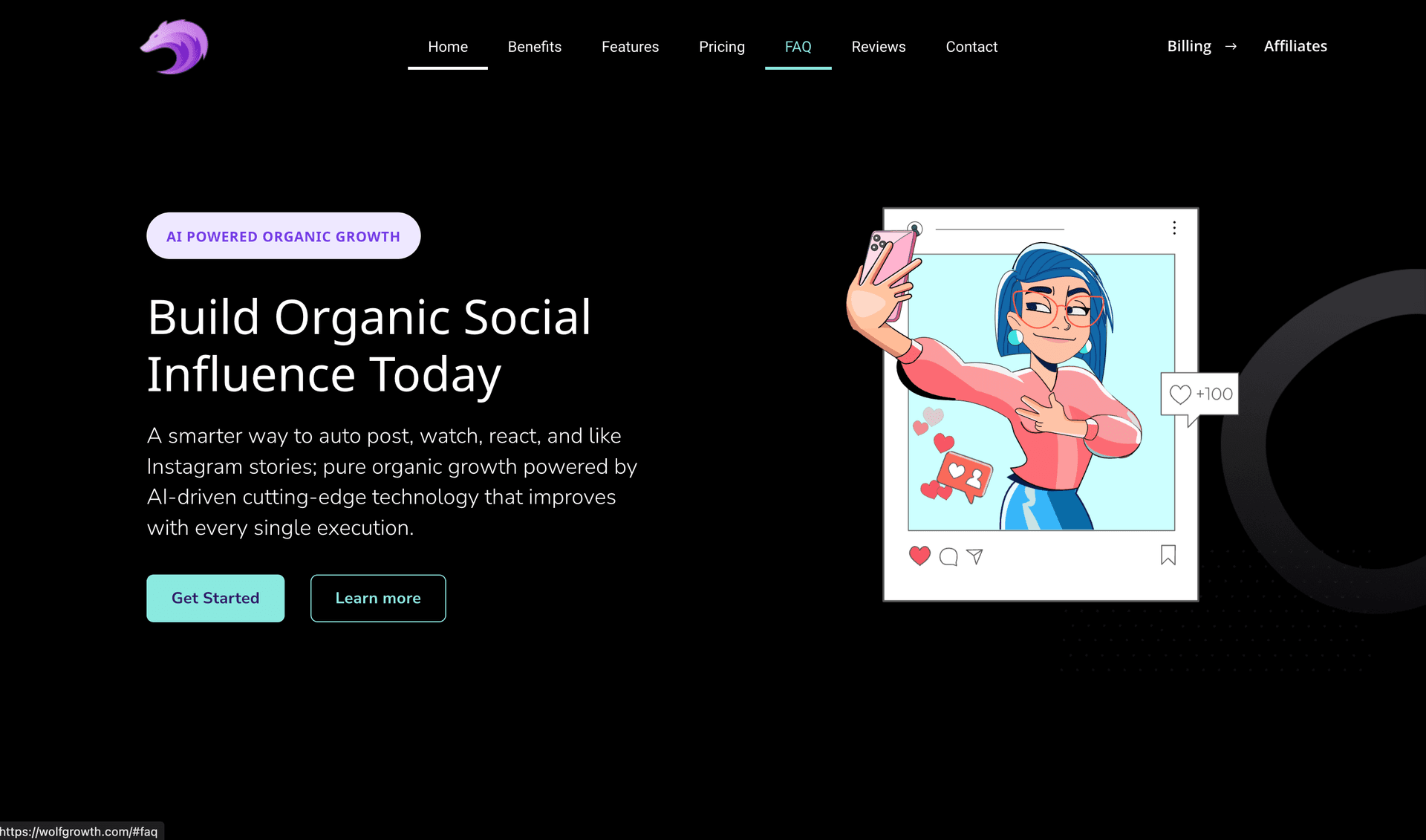 Wolf Growth presents itself as an AI-powered Instagram growth service, promising automated engagement and follower growth through various features like story viewing, post scheduling, and mass interactions. With a sleek website and bold claims about organic growth, Wolf Growth might seem appealing to those looking to boost their Instagram presence quickly. However, it's crucial to approach such services with caution and skepticism.