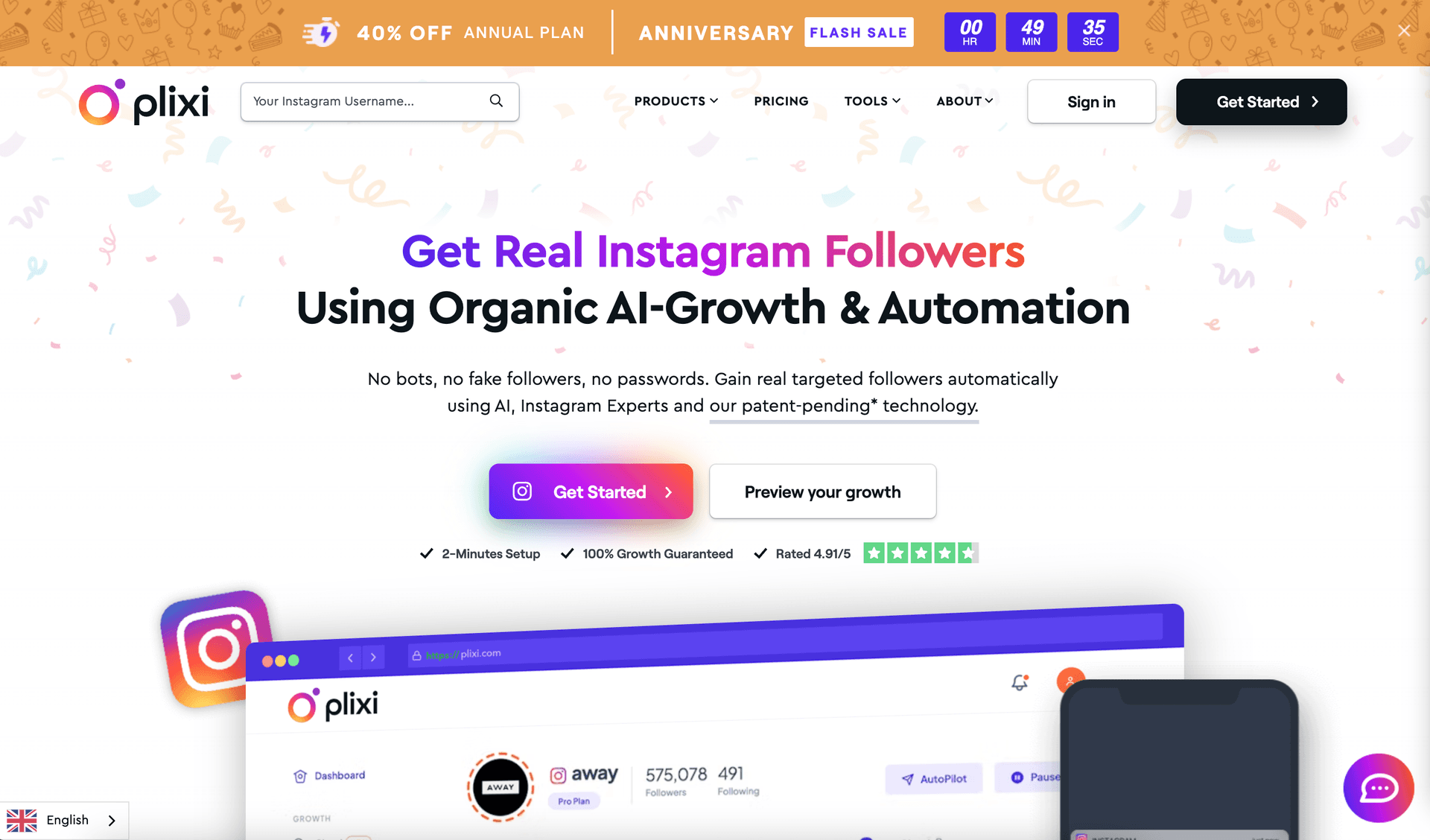 Plixi claims to be an AI-powered Instagram growth service that promises to help users gain real followers organically. They position themselves as a tool that uses artificial intelligence and automation to increase your Instagram followers, likes, and engagement without using bots or fake accounts.