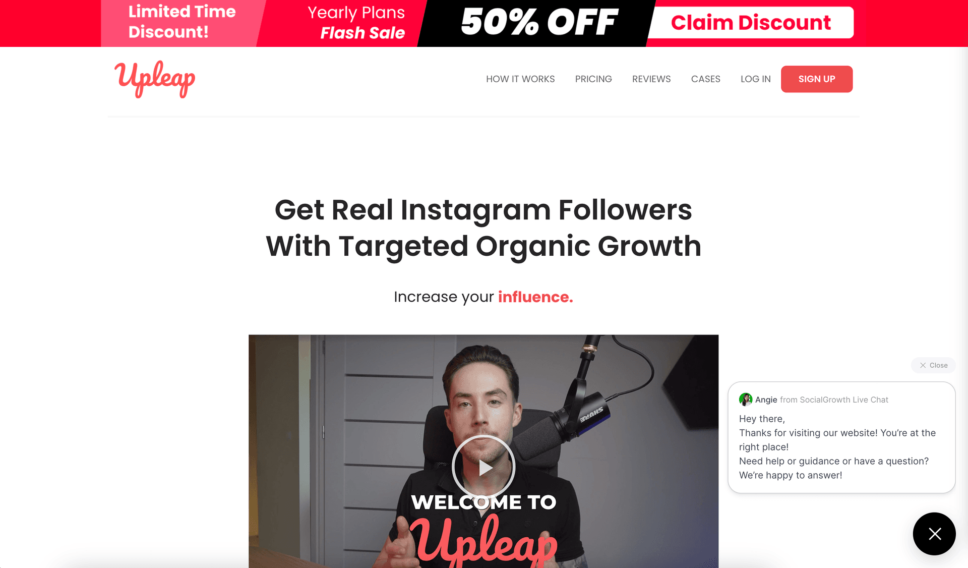 Upleap claims to be an Instagram growth service that promises to help users gain real followers through targeted organic growth. They position themselves as a tool to increase reach, influence, followers, and engagement on Instagram without using bots or fake accounts.